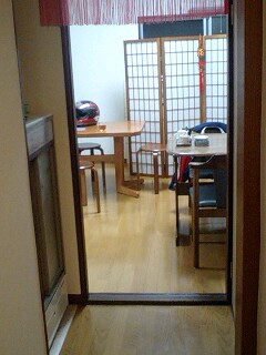 普通に靴脱いで、玄関を入ると普通の家の台所にテーブルが・・・。