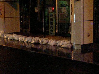 土嚢を積んで万全の構えです。