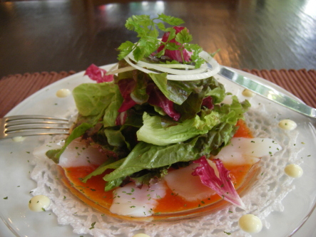 帆立貝とイカのサラダ、ガスパッチョソース