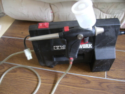 右は塗装用の機械「コンプレッサー」様は圧縮空気を作って塗料を吹き付ける訳です。
